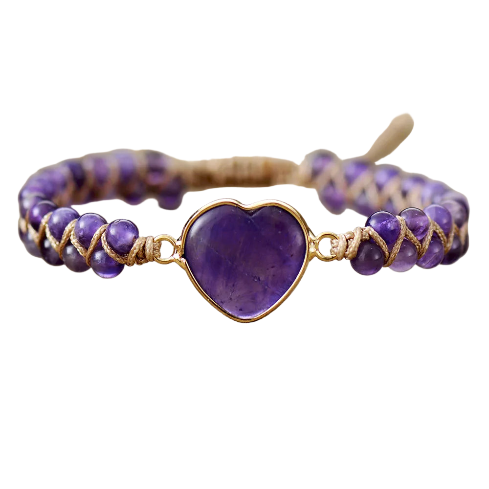 Boho Heart Shape Amethyst Beads Braided Adjustable Bracelet