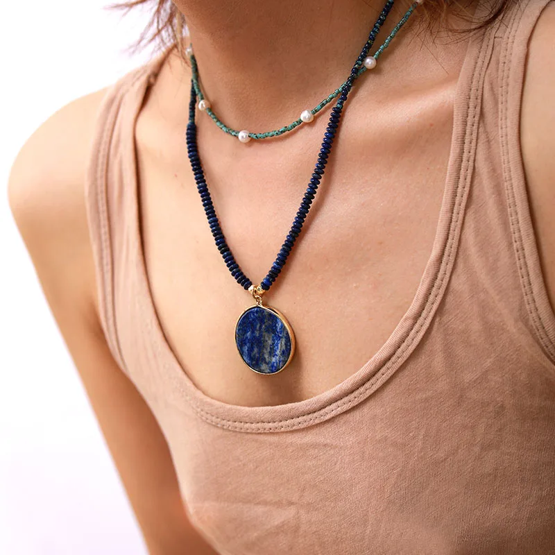 Boho Lapis Lazuli Pendant & Bead Necklace