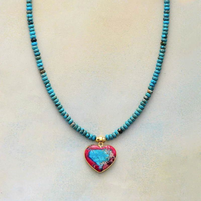 Embrace your free-spirited side with our Boho Natural Stones Heart Short Collar Necklace. Handcrafted with love, this unique piece features natural stones and a delicate heart charm, perfect for adding a touch of bohemian charm to any outfit. Elevate your style and stay effortlessly chic.