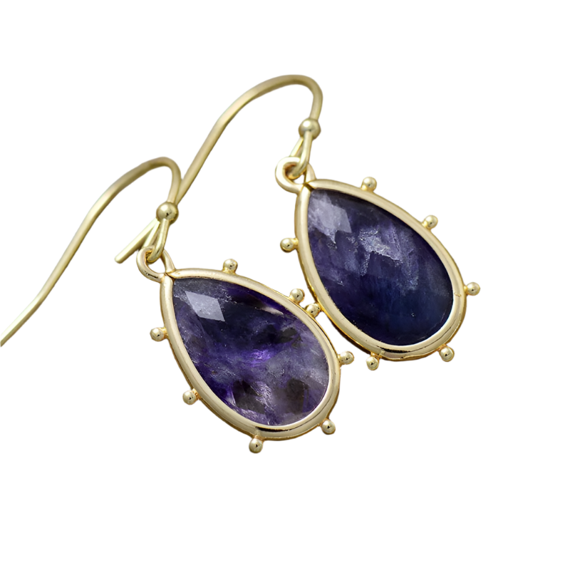 Bright Waterdrop Purple Fluorite Dangle Earrings