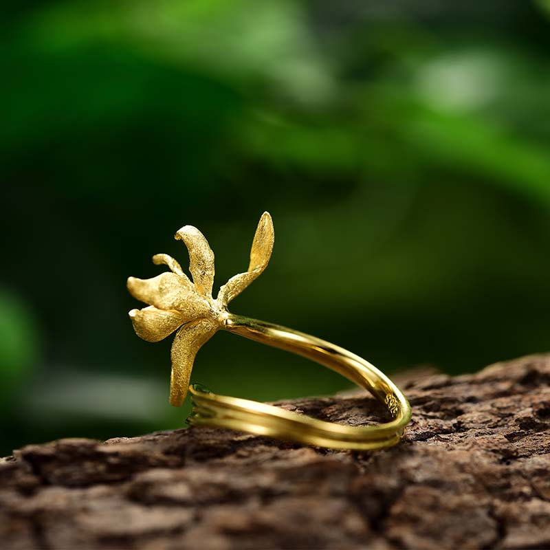 Elegant Iris Flower Leaves Adjustable Ring
