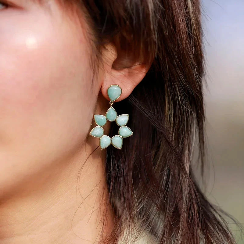 Flower Amazonite Stud Dangle Earrings