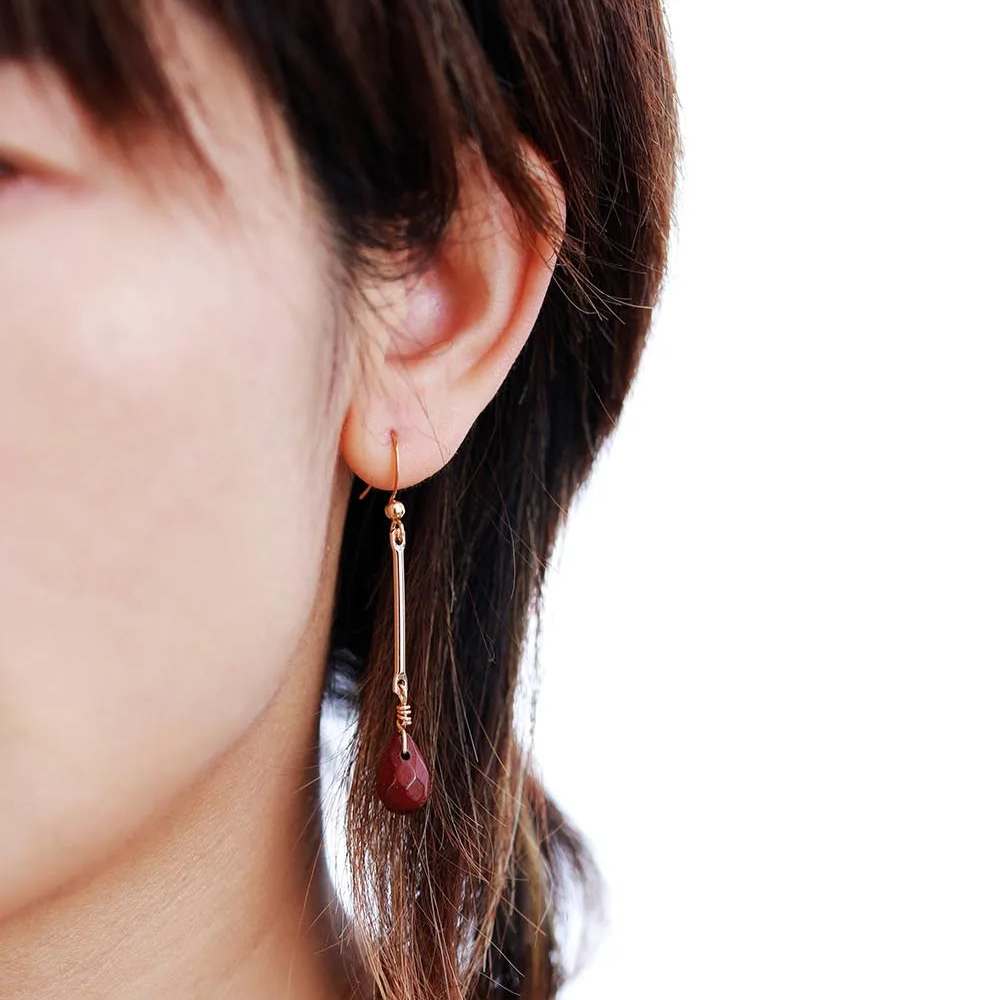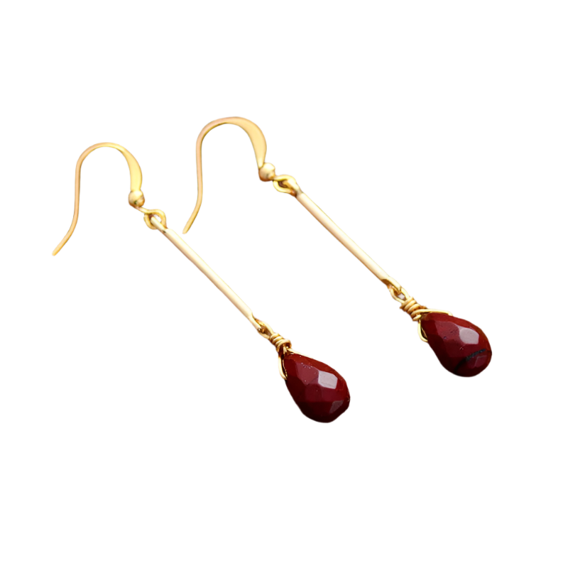 Handcrafted for the boho chic soul, these Red Jasper Water Drop Dangle Earrings radiate energy and crystal healing. With a stunning design that captures the essence of nature, these earrings are a perfect accessory for any bohemian style lover. Elevate your style and energy with these handmade earrings.