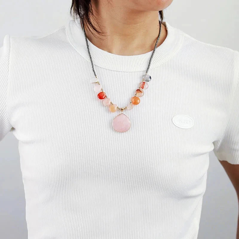- Gemstone: Rose Quartz pendant, Onyx beads
