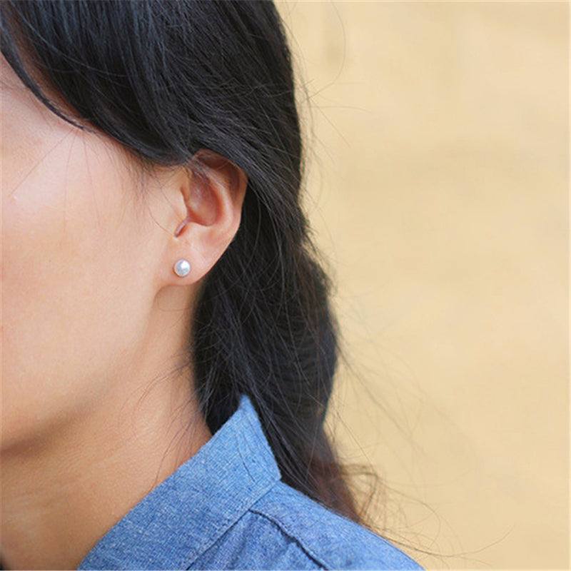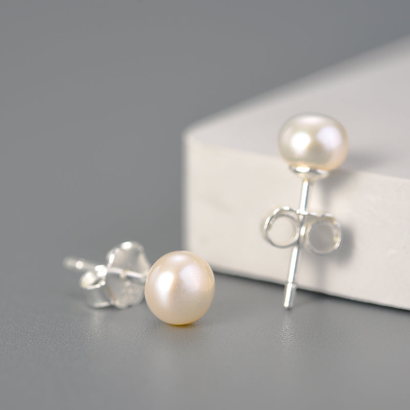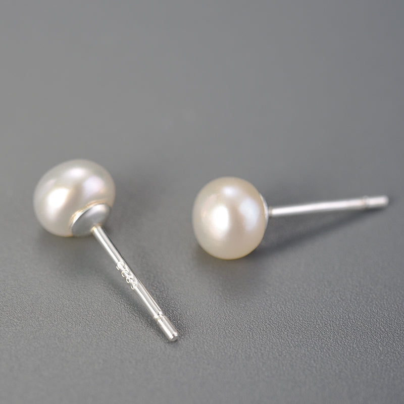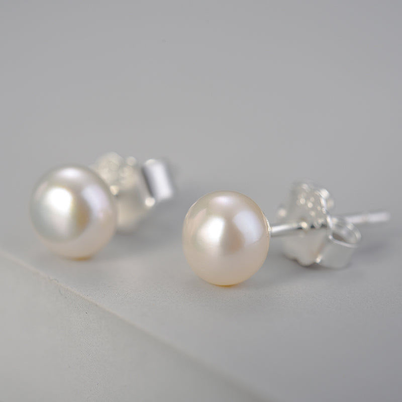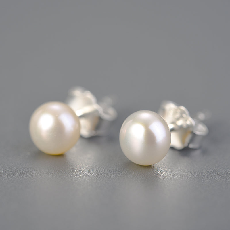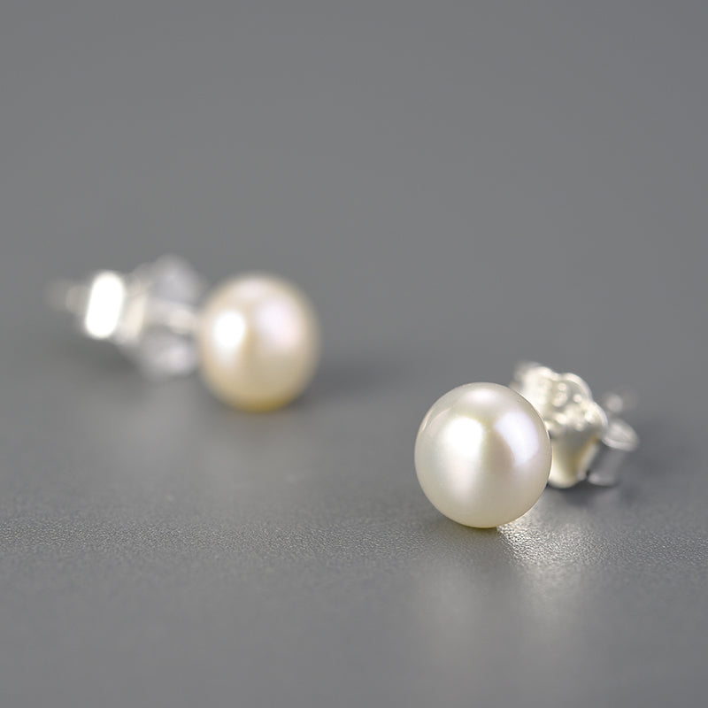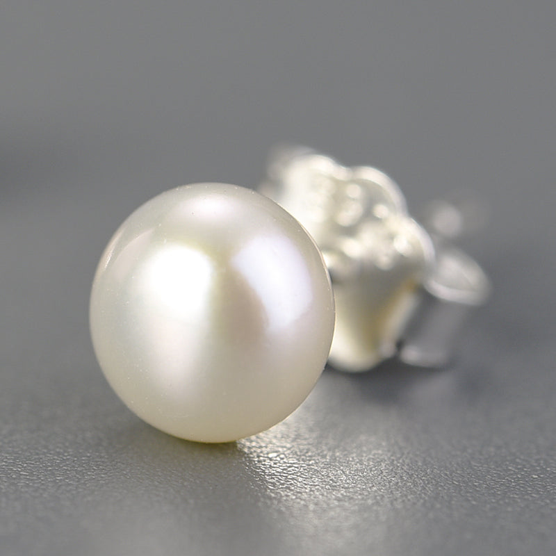 Sterling Silver Classic Single Pearl Stud Earrings