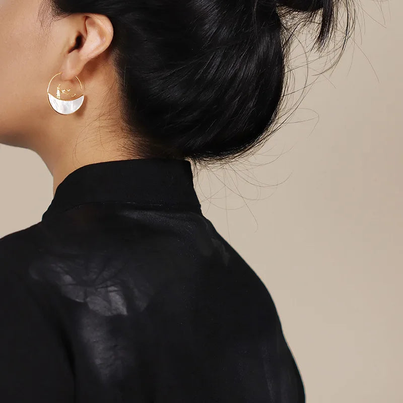 Sterling Silver Crescent Moon Mother of Pearl Camel Silk Road Dangle Earrings