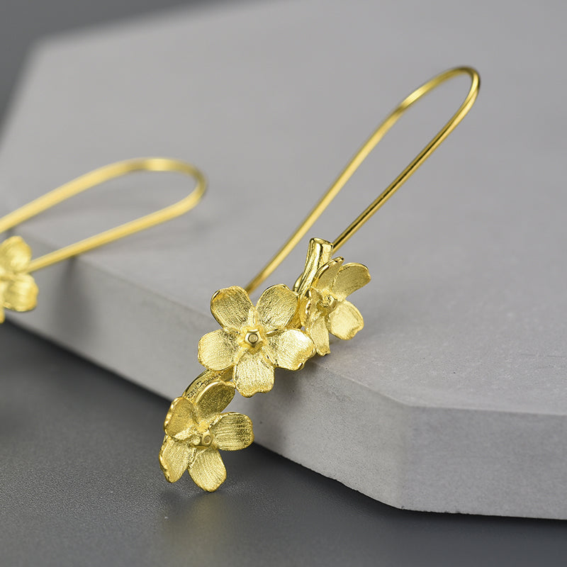 Sterling Silver Forget-me-not Flower Long Dangle Earrings