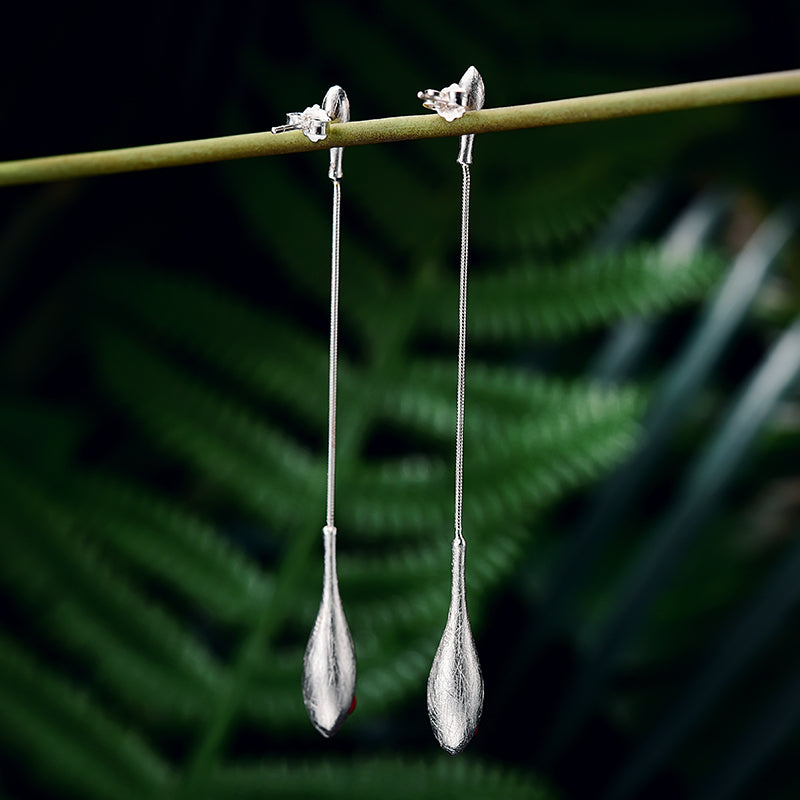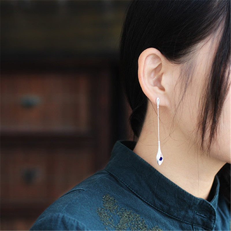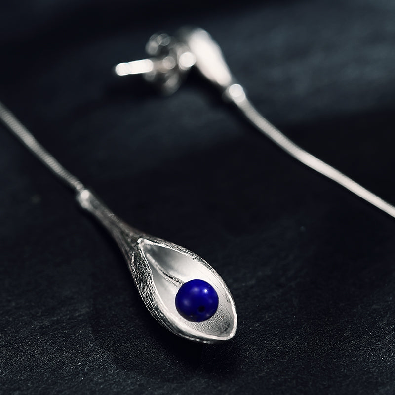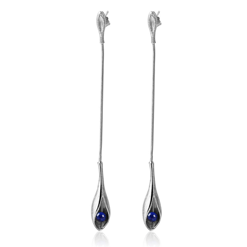 Sterling Silver Lapis Lazuli Drop Flower Long Dangle Earrings