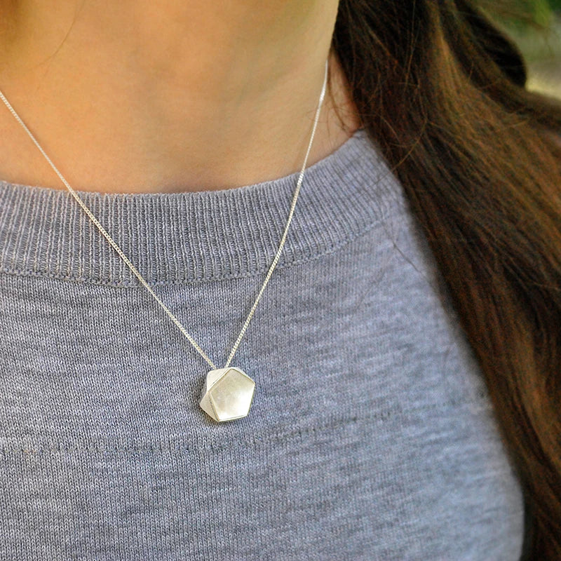 Elevate your style with our Minimalism Pentagonal Prism Pendant. Handcrafted with sterling silver, this geometric piece exudes creativity and a minimalist charm. Perfect for any occasion, this pendant allows you to create a unique look. Make a statement with the Minimalism Pentagonal Prism Pendant.