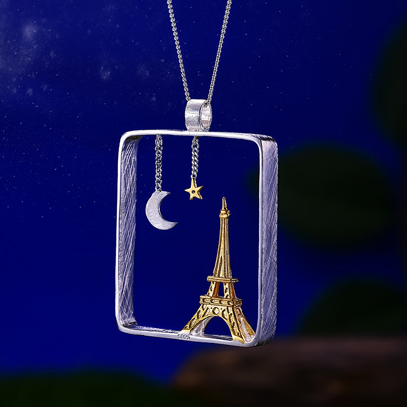 Shine bright like the moon with our Moonlight Eiffel Tower Pendant! Made from sterling silver, this pendant is a playful nod to the city of love. (Chain not included) Bring a touch of whimsy to any outfit with this quirky and unique piece.