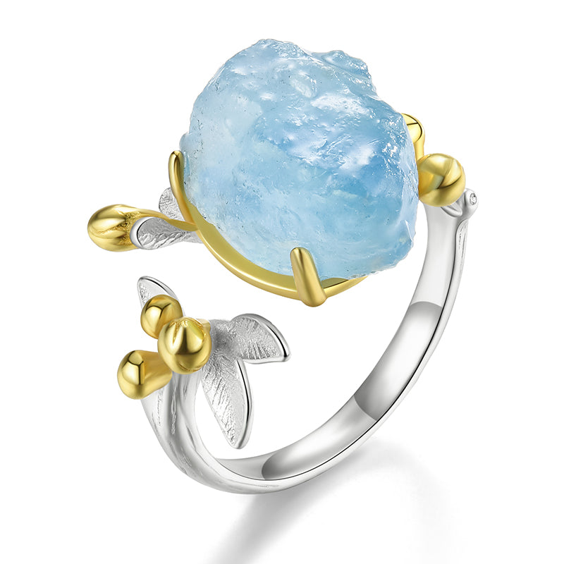 Adorn your hand with this exquisite handmade Natural Rough Aquamarine Flower Adjustable Ring. Crafted with sterling silver, the rough Aquamarine stone is nature-inspired, radiating a calming aquamarine tone. Embrace the beauty of nature with this unique, adjustable ring.