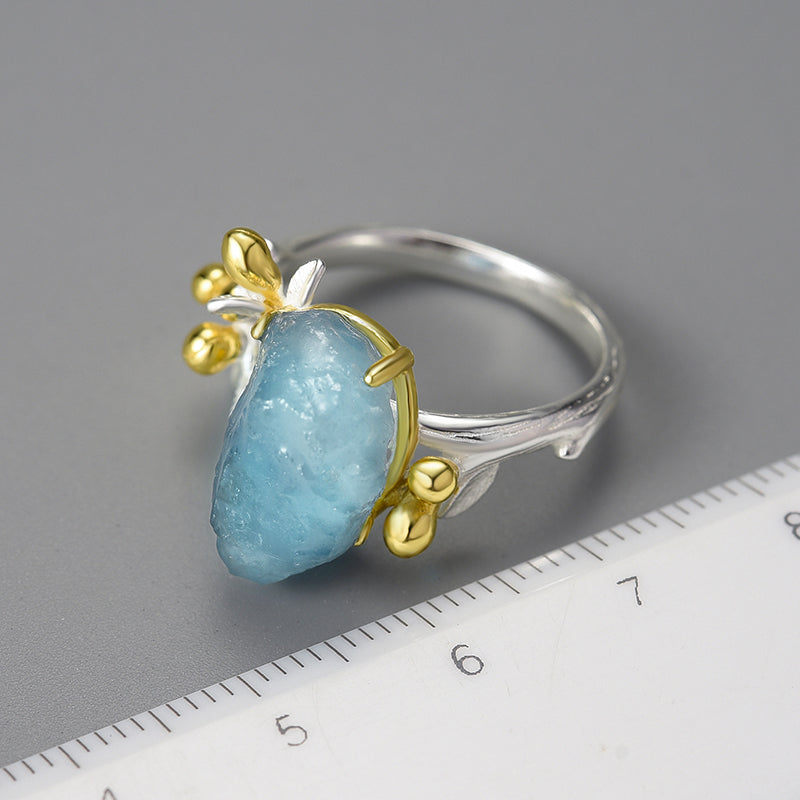Sterling Silver Natural Rough Aquamarine Flower Adjustable Ring