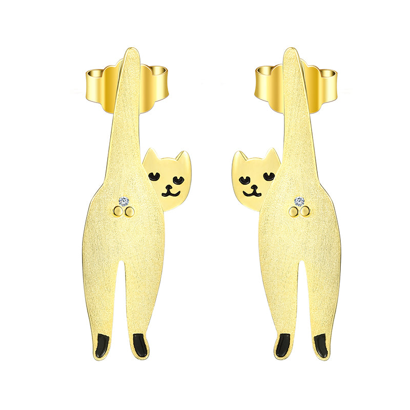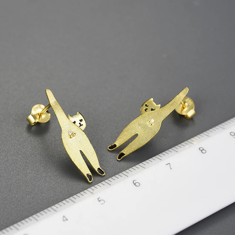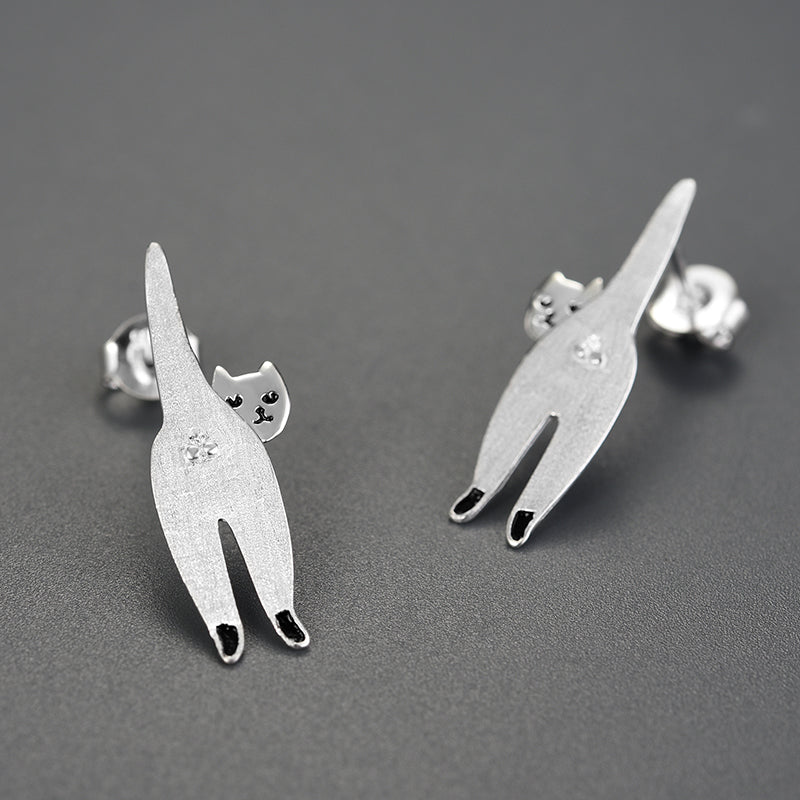 Sterling Silver Naughty Cat Stud Earrings