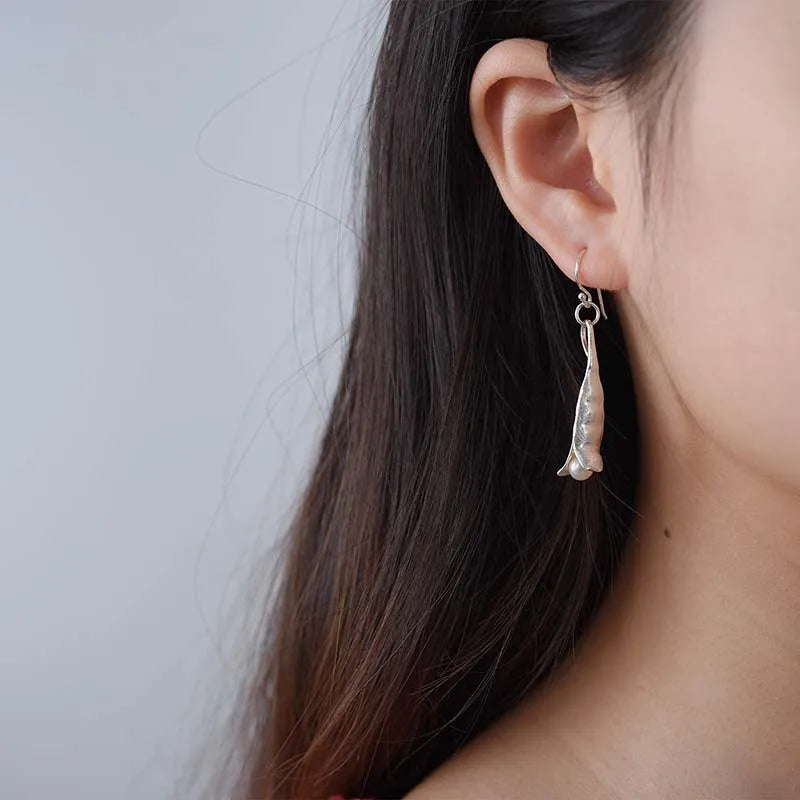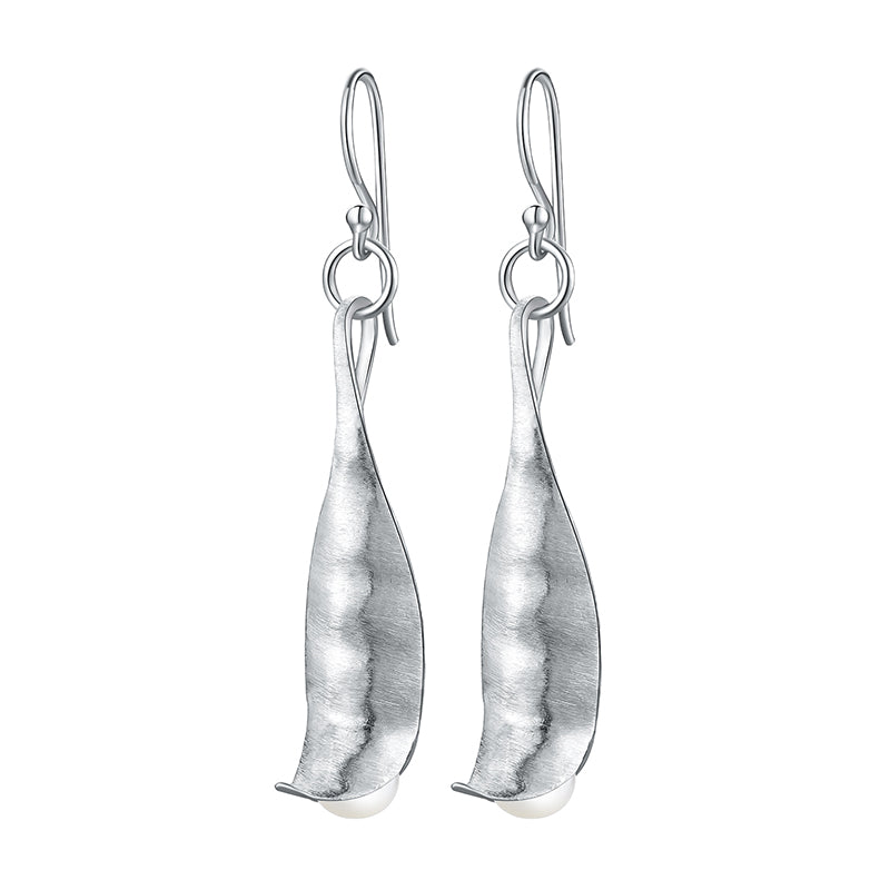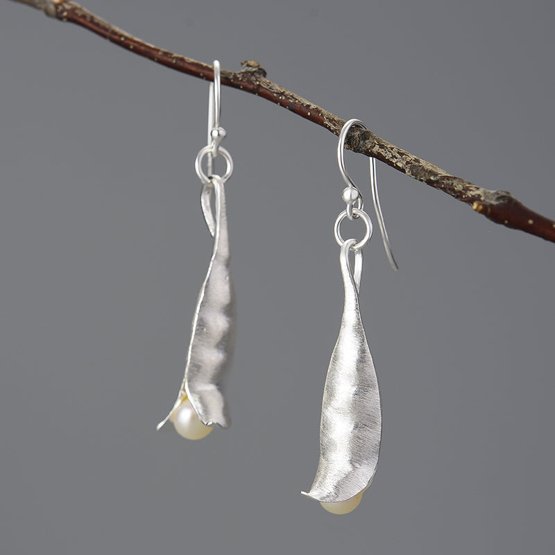 Elevate your style with our New Pea Pods Dangle Earrings. Handmade from sterling silver, these nature-inspired earrings are a unique and elegant addition to any outfit. Delicate pea pod details make these earrings a standout statement piece. Perfect for nature lovers and fashionistas alike.