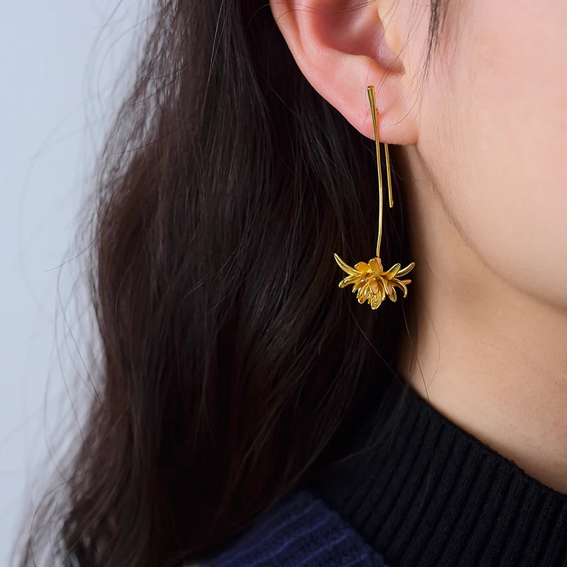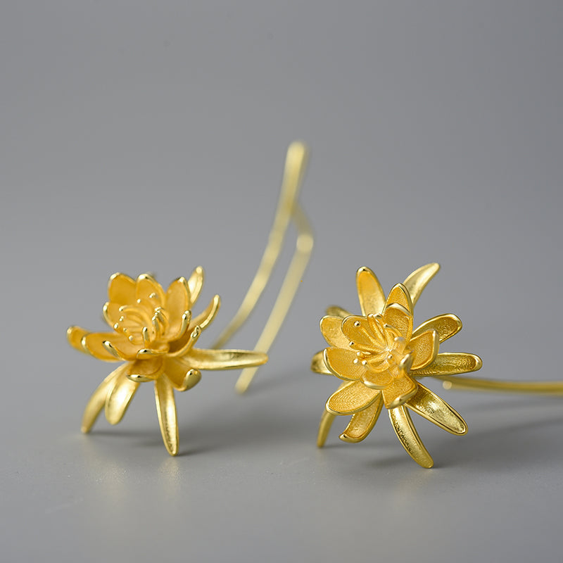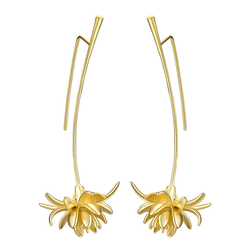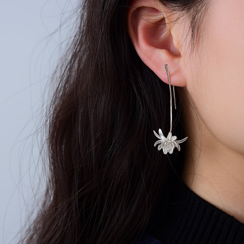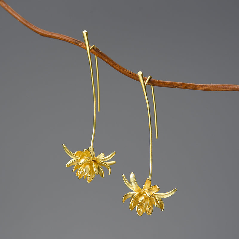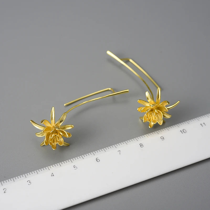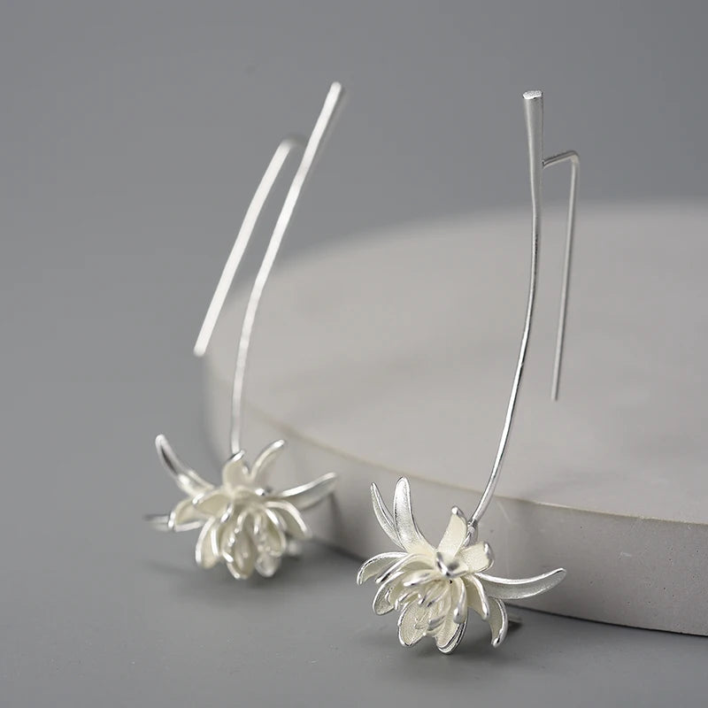 Sterling Silver Night-Blooming Cereus Flower Long Dangle Earrings