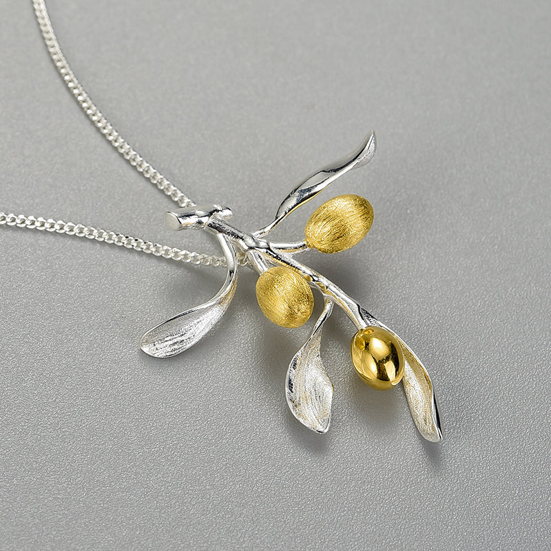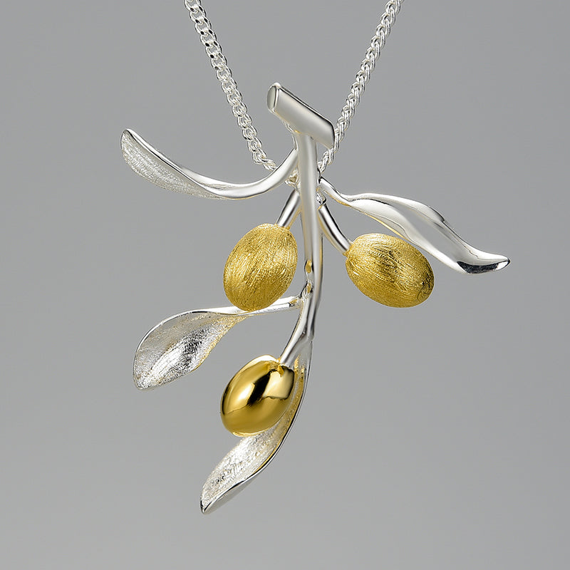 Sterling Silver Olive Tree Branch Pendant and Chain (Chain is optional)