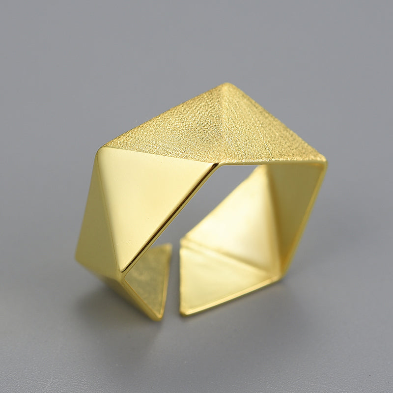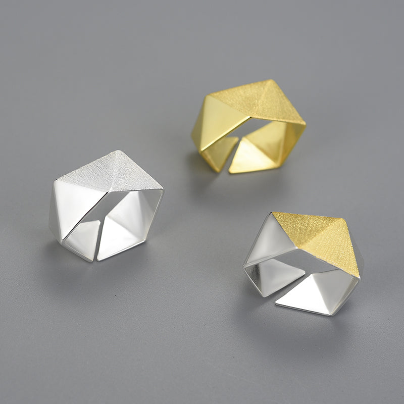 Indulge in the art of elegance with our Sterling Silver Origami Art Adjustable Ring. Handcrafted with sterling silver, this sophisticated piece is perfect for any occasion. The intricate design is reminiscent of the world of art, adding a touch of luxury to your ensemble. Elevate your style with this exquisite ring.