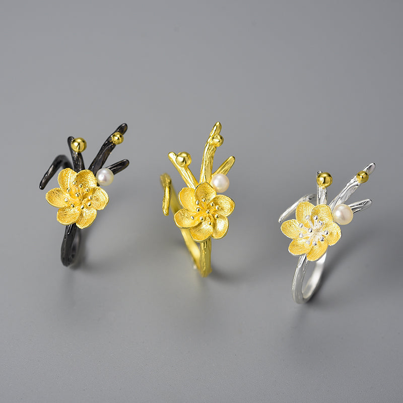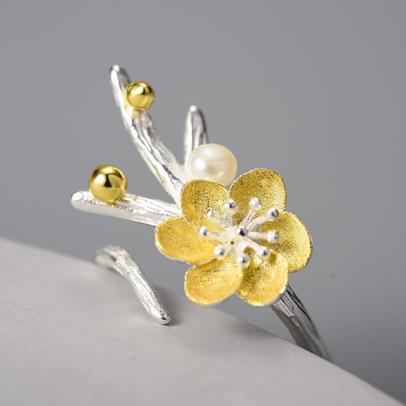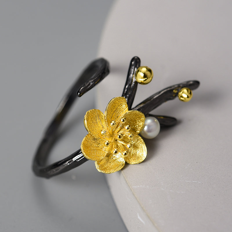 Handmade with intricate detail and inspired by nature's beauty, our Sterling Silver Pearl Adjustable Snow Flower Ring resembles an elegant blossom, making it the perfect addition to any outfit. Crafted from high quality sterling silver and adorned with a stunning pearl, this ring will add a touch of sophistication and natural charm to any look.