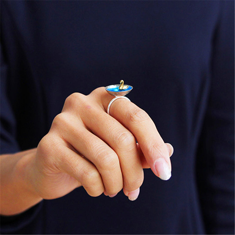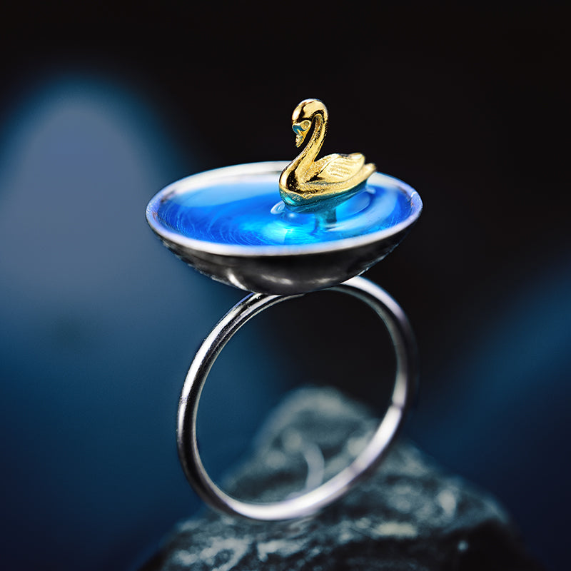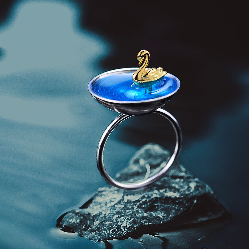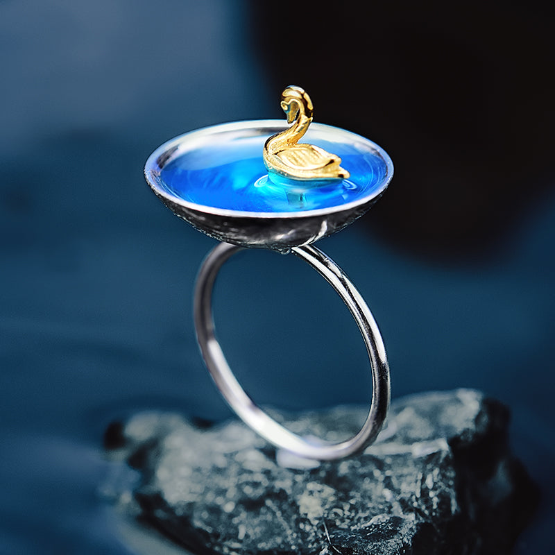 Sterling Silver Poetic Swan In The Sea Adjustable Ring