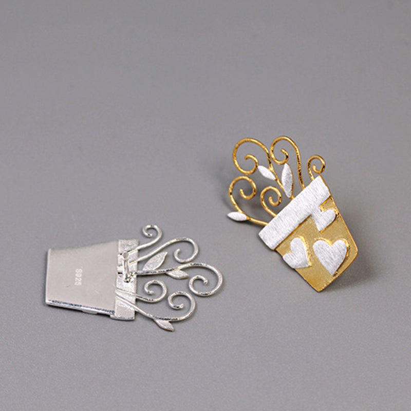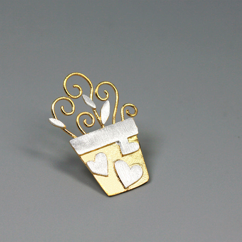 Sterling Silver Romantic Flowerpot Handmade Fine Brooch