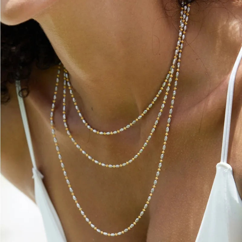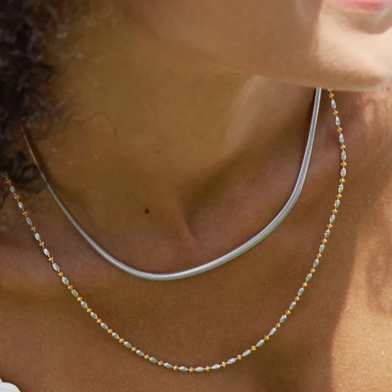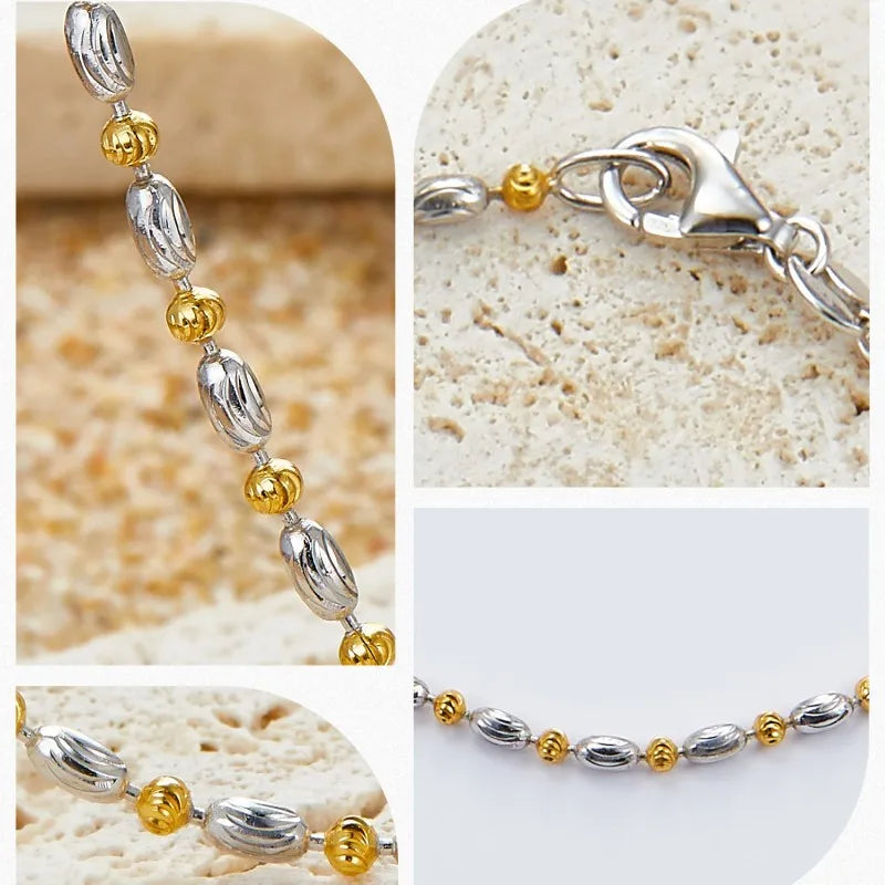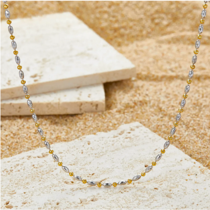 Sterling Silver Two Tone Beaded Chain Necklace