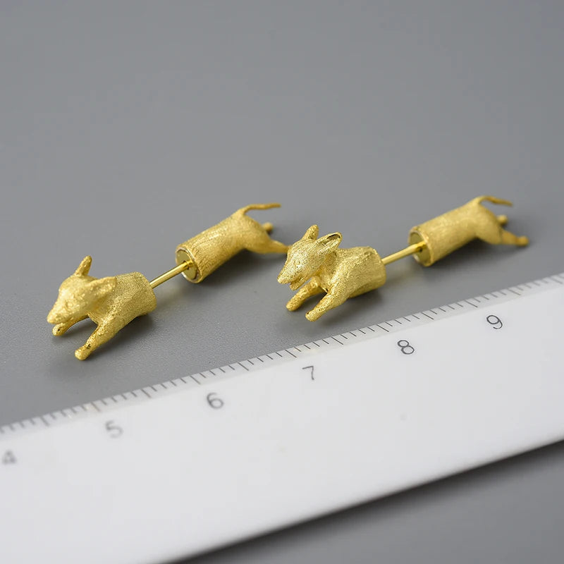 Sterling Silver Unusual Running Dachshund Dog Stud Earrings