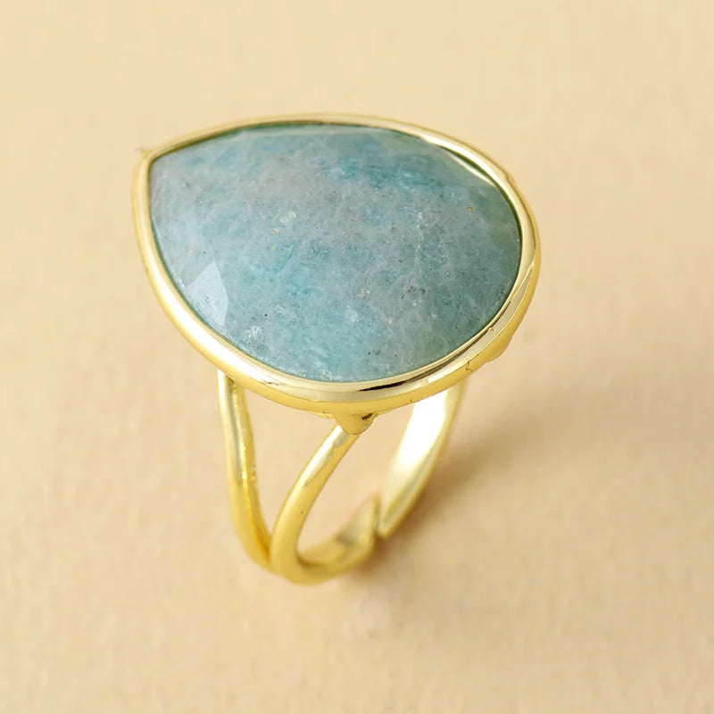 This handmade ring is made from brass with Amazonite natural gemstone. This Waterdrop Amazonite Adjustable Ring provides you with an elegant design and it's a beautiful gift for yourself or a loved one.